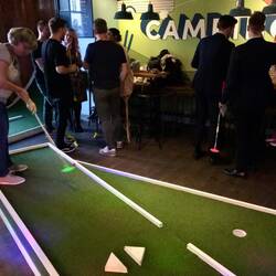Danach schlenderten wir drei durch Århus. Auf der wunderschön gestalteten Dachterrasse des Einkaufszentrums "Sailling" gab es einen kleinen Apéro, und anschliessend spielten wir eine Runde Indoor-Minigolf in der Bar "Camping", die Marina gewann. Auf Camillas Empfehlung hin gingen wir dann zum Abendessen ins Restaurant "Madklubben Grill", das zur gleichen Kette gehört wie die Restaurants in Kopenhagen.