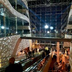 Unterwegs machten wir jedoch noch einen Stopp im Finanzministerium, das mit schön gestalteten Besprechungszimmern beeindruckte, sowie im königlichen Bibliotheksgarten und in der königlichen Bibliothek selbst. Endlich betraten wir den Schwarzen Diamanten (den neuen Teil der königlichen Bibliothek). Durch eine Diskokugel erschien der gesamte Innenraum wunderschön und funkelte wie ein echter Diamant.