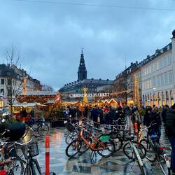 Die Pferdeshow war sehr beeindruckend, besonders die Musiker auf den Pferden (mit Trommeln und Trompeten) waren sehr eindrucksvoll. Danach stellten sie ihre Kampfkunst unter Beweis und halbierten im Vorbeireiten Kohlköpfe, die auf Spiessen befestigt waren. Von dort aus wollten wir entweder die königliche Küche, die königlichen Empfangsräume oder die Gruft unter dem Christiansborg Slot besuchen. Allerdings waren die Schlangen überall so lang, dass wir die Zeit nicht im Freien mit Anstehen verbringen wollten. Also beschlossen wir, in die Holmens Kirche zu gehen, wo königliche Trauungen, Taufen, Beerdigungen usw. stattfinden. Auf dem Weg mussten wir jedoch einen Zwischenstopp im Umweltministerium einlegen, da wir von aussen im Fenster ein altes Vermessungsgerät der Firma Leica erblickten. Danach kamen wir gerade rechtzeitig in die Kirche, um einem Gesangskonzert zu lauschen. Nun waren wir wieder etwas aufgewärmt, aber immer noch hungrig. Also beschlossen wir, zu unseren Fahrrädern im Blox zurückzukehren und von dort aus in der Nähe des Rathausplatzes etwas zu essen.