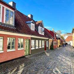Von der Skt. Albani Kirche aus war es nur ein kurzer Weg bis zum alten Stadtteil von Odense, wo einige der ältesten Häuser der Stadt stehen. Kopfsteinpflasterstrassen und Fachwerkhäuser prägen dasもっと詳しく