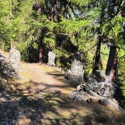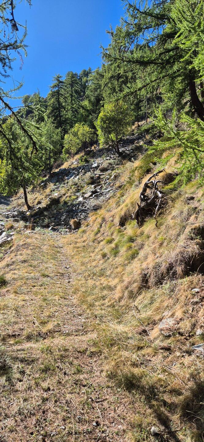 Immer guet lose und nit trample. Es isch wäge Steischlag nur e Stück vom Wäg gsperrt. Durchgang uff eigeni Gfohr. Also de ab und dürre.