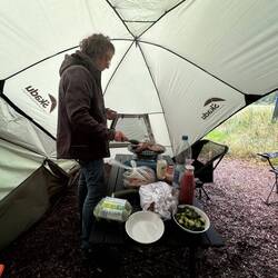 Die Nacht war ruhig und es fing erst gegen 6 Uhr morgens zu regnen an. Allerdings nicht fürchterlich lang, so dass wir nach dem Frühstück unsere nassen Sachen im Trockenen einpacken konnten.