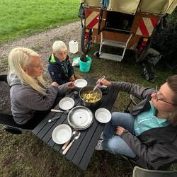 Nach einer ruhigen und erstaunlich trockenen Nacht wurden wir von Inge mit Kaffee und Brötchen zum Frühstück verwöhnt.