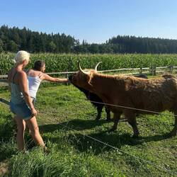 Heute haben wir mit Anita und Roland fürstlich gefrühstückt. Danach haben Tabea und Loui die Kühe umgetrieben, bevor wir uns verabschiedeten und Laugna hinter uns ließen.