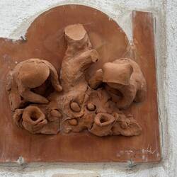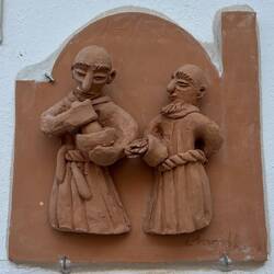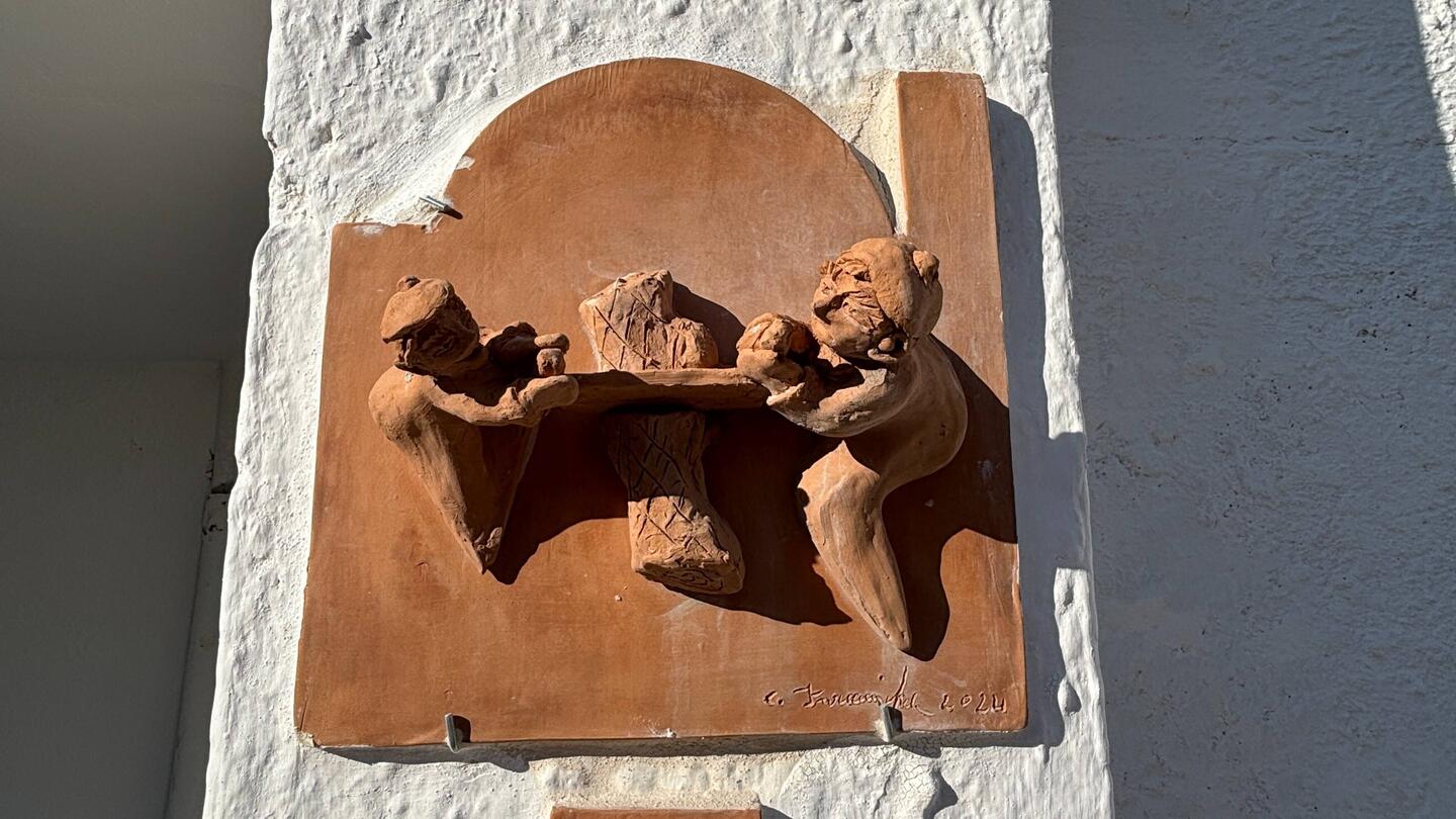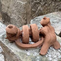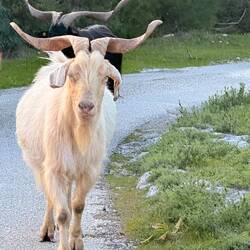 Hier noch die Fotos der witzigen Tonfigürchen. Und auf unserem Heimweg begegnen wir noch den Nachbarziegen auf ihrem Heimweg. :-)