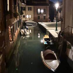 Freundin A. holt mich ab. Kurzer Fußweg zur Wohnung. Venedig ist bereits in die Nacht eingetaucht und präsentiert sich von einer schönen und ruhigen Seite.
