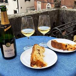 Auch der zweite Tag im neuen Jahr startet großartig mit herrlichem Panettone und Champagne Jacquart auf der kleinen Terrasse und ein bisschen Sonne! Danke Martha an der Stelle!