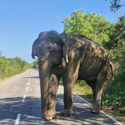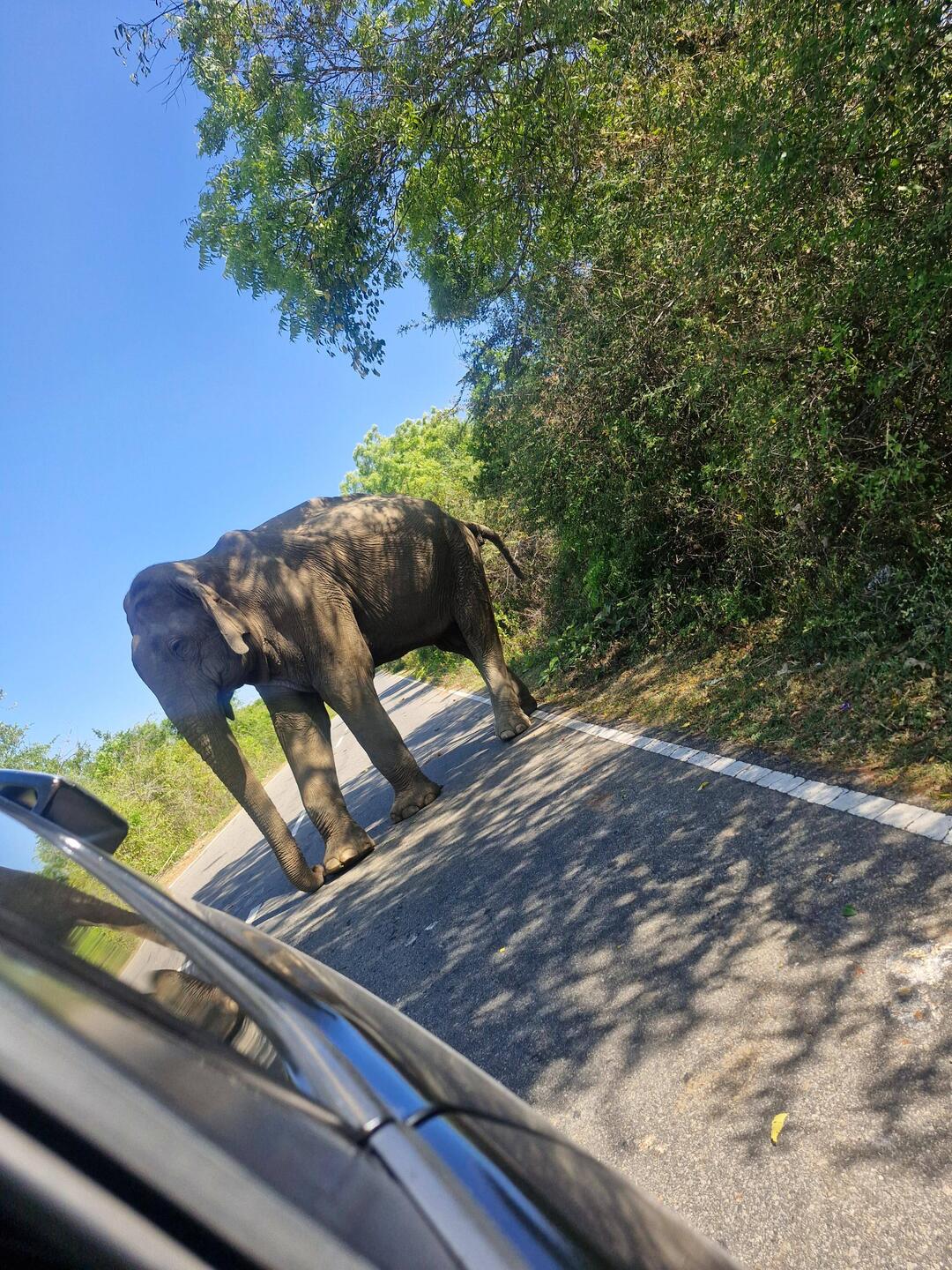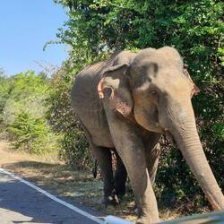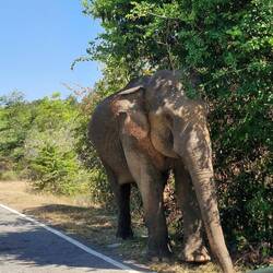 Ex worker elephant gets fed by people driving past, not supposed to get out of the car, but I got a bit excited.