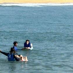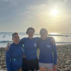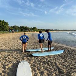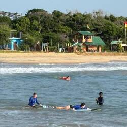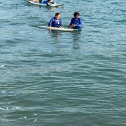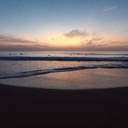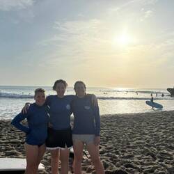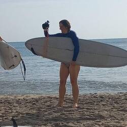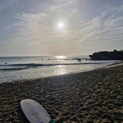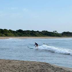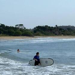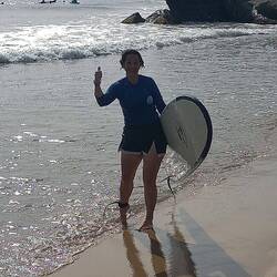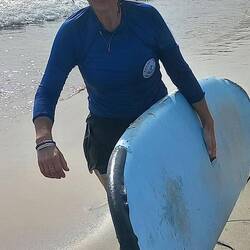 Surf lessons at 0630 this morning, good fun, water in places it shouldn't be, stood up briefly, takes a few unused muscles to get the hang of it.