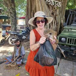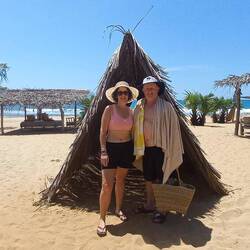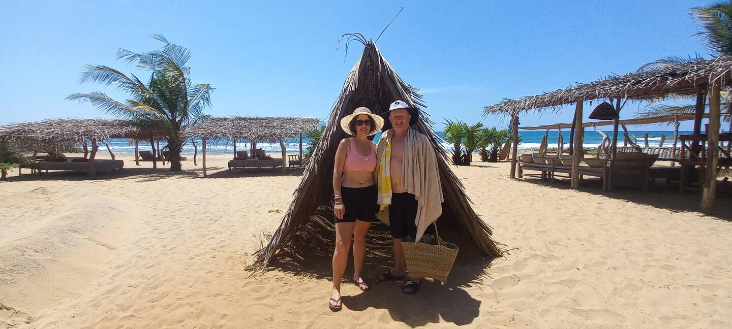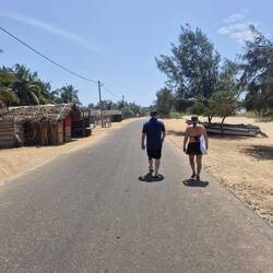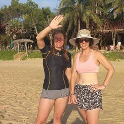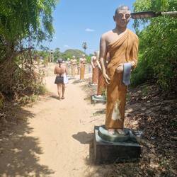 Long beach walk in the heat of the day with no sunscreen... not our smartest move, but we didn't have many clothes on so when we reached the Buddhist temple that had actual Buddhas in wrapoed inRead more