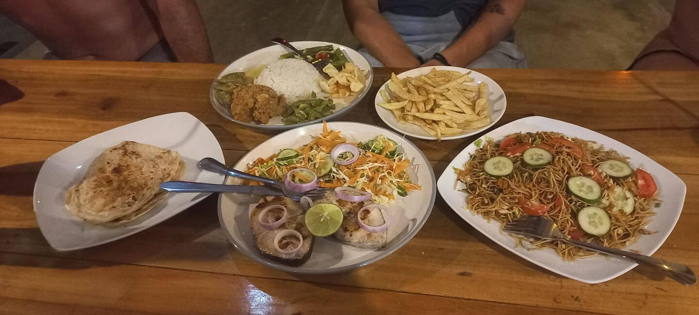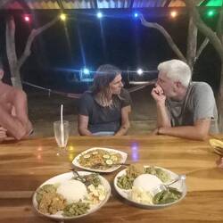 Food is good, enjoying a bit of everything, good flavors.