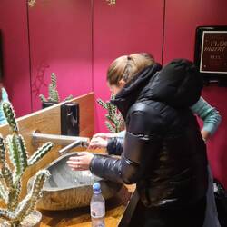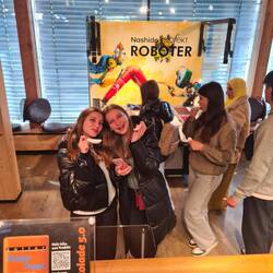 Po malo zaspani vožnji... prvi postanek za wc in kavico. Dijaki se počasi prebujajo...