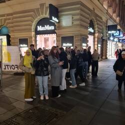 Sprehodili smo se mimo Hofburga, hiše metuljev, Albertine, Sacher hotela, grobnice Habsburžanov do Stefanovre katedrale na večerjo.