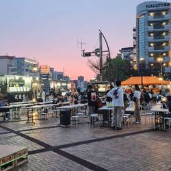 Direkt am Hafen gelegen kommen wir vom hier morgen direkt mit der Fähre nach Südkorea.