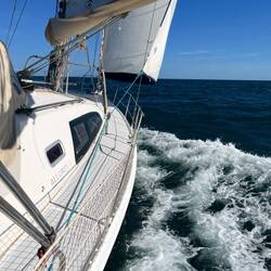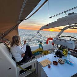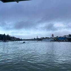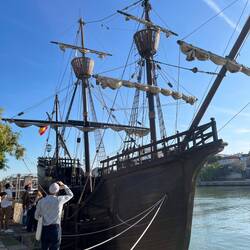 The club real nautico starts a rowing competition the moment the draw bridge opens for us and we officially leave Sevilla! In the background the old schooner Sørlandet from Norway.