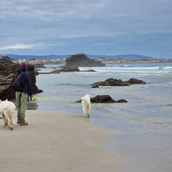 Nach dem ersten Besuch haben wir eine Radtour entlang der Steilküste gemacht, bis wir um 17 Uhr wieder aufgeschlagen haben. Nun sind wir noch eine Nacht am Playa de las Catedrales und haben einen tollen Blick aufs Meer. Fox durfte heute am Privatstrand mal länger von der Leine, was Sie richtig ausgenutzt hat. Flüchten konnte Sie nicht, da Steilküste 😀