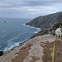 Gegen Mittag sind wir dann Richtung Fisterra oder auch Finisterre gefahren . Die letzten Kilometer sind wir zum Leuchtturm gelaufen und es war ein reger Pilgerbetrieb, und vor allem sehr stürmisch, was Appel kurzzeitig seine Ohren gekostet hat.