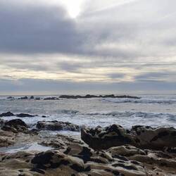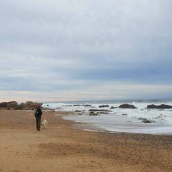 Und weiter geht's Richtung Süden. Tolle Steilküste, und die Wellen sind so groß, dass der ganze Salzwasserdampf alles in Beschlag nimmt. Brillen sind keine 2 Minuten klar und das Fell der Hunde klebt ganz schön 😁