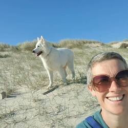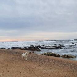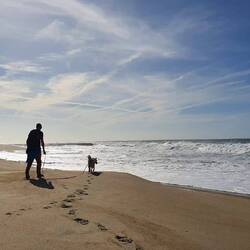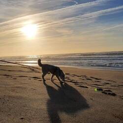 Wir hatten einen Morgenspaziergang am Strand, und das Glück, dass Fox mal wieder frei laufen konnte, da er an allen offenen Stellen erfolgreich von uns bewacht wurde. Sie hat es sichtlich genossen hin und her zu tollen.