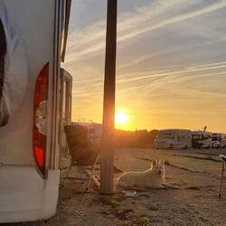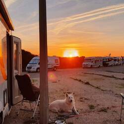 Gegen 7 hat es angefangen zu Gewittern, und so ein heftiges Unwetter haben wir schon lange nicht mehr erlebt. Etwas beängstigend war es schon, aber die Hunde waren ganz cool und haben geschlafen 😀 Fox liegt nun an Ihrem Lieblingsplatz unter dem Womo und wir im sitzen im Trockenen 👍