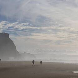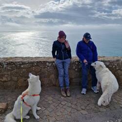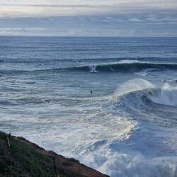 Am frühen Mittag sind wir nach einer sehr abwechslungsreichen, durch tolle Landschaft, aber auch leider abgebrannte Wälder, in Nazare angekommen. Hier herrschte heute bei bestem Wetter Volksfeststimmung. Die Menschenmassen sitzen auf den Hügeln um die Bucht, und beobachten die vielen Surfer wie sie versuchen, eine von den wirklich riesigen Wellen zu reiten. Wenn jemand eine Welle schafft, gibt es Applaus und Jubel, sehr nett. Allerdings sind das alles Profis, denn ohne Sicherung in Person eines Jetskifahrers, der denjenigen sofort aus dem Meer holt, wäre man in den Wassermassen total verloren.Read more