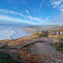 Was wir nicht so toll fanden ist, dass einige Pilger einfach ihre Schuhe, Socken, Unterwäsche etc. an der Steilküste zurück lassen.😡 Unmöglich..