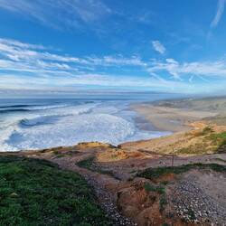 Nazare.... haben wir noch nicht erreicht, da wir seit langem wieder einen superschönen, menschenleeren Strand entdeckt haben. Und dazu noch eine kleine Beachbar, besser geht's nicht. Haben nach unserem Mittag an Strand noch etwas getrunken, 2x Softdrinks, 2 Kaffee, 1 heiße Schokolade... € 5.90.