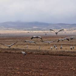 Dann noch ein Highlight auf der Hochebene. Tausende Kraniche auf den abgeernnteten Feldern, wahrscheinlich auf Zwischenstopp Richtung Süden...
