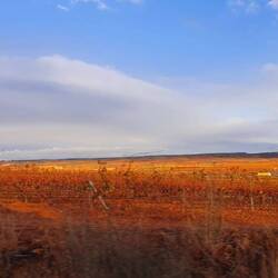 Nach der Wanderung ging es weiter und wir sind über eine karge Landschaft gefahren. Man kann es am besten beschreiben, wie in einem Western. Wüste, rotbraune Felsen, ein Strohballen der bei Wind über die Straße weht; und man ist für hunderte Kilometer einfach alleine. Keine anderen Touristen zu sehen, alle 50km mal ein halbverlassenes Dorf und wenn man in 2 Stunden Fahrt 5 Autos begegnet, ist das viel. Wir fahren meistens auf 700 bis 1200 Höhenmeter, und das Thermometer sagt 4°.