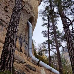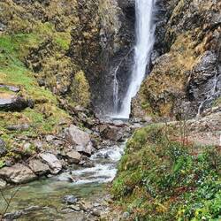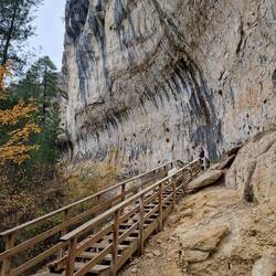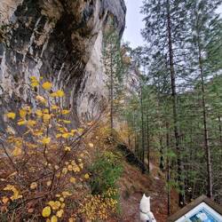 Nach dem Frühstück ging es zum Wandern, erst ein bisschen am Flussufer, dann etwas in die Höhe, und immer an den steilen Felsen entlang.