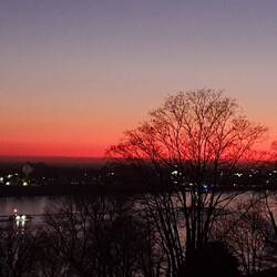 Der Tag hat mit einem herrlichen Sonnenaufgang gestartet, kalt und ein bisschen Schnee vor der Haustür.