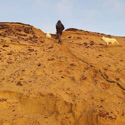 Stehen jetzt im Nationalpark Thy am Leichtturm. Die Küste hier ist Steilküste, aber man konnte sich am Tau entlang hoch- und runterhangeln.