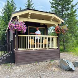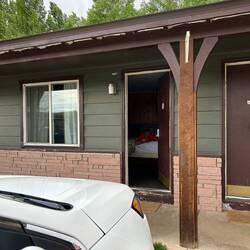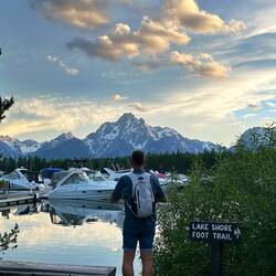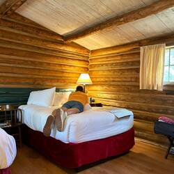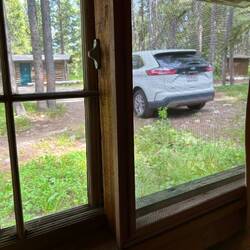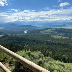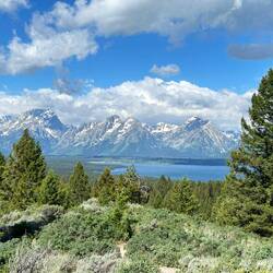 Grand Teton park skulle udforskes. Vi tog det dog helt roligt med flere kopper kaffe/te og en 3 km. gåtur i området. Her er hytter, som vi bor i, campingplads, lystbådehavn, besøgs center,Read more