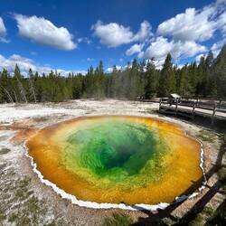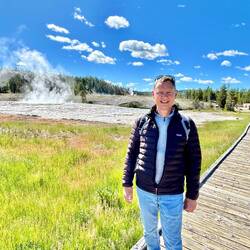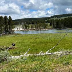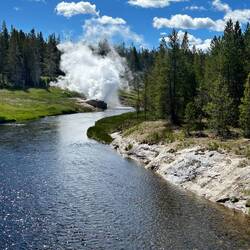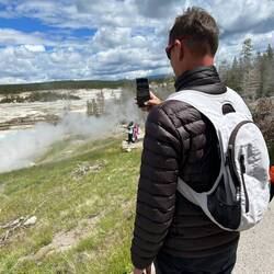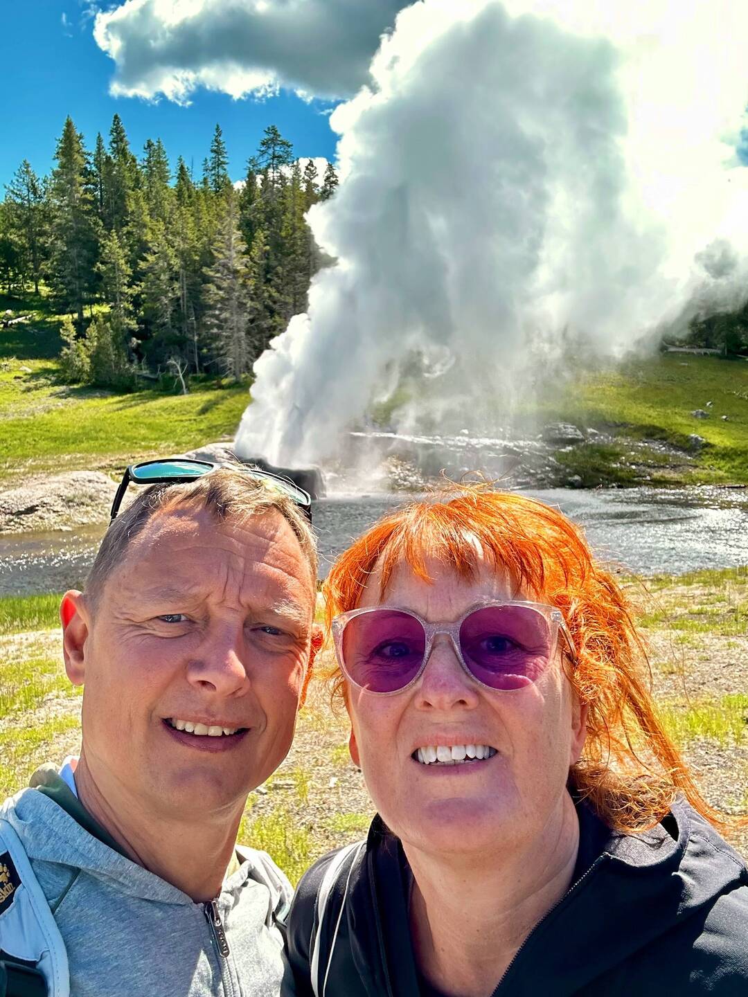 1,5 times køretur ind i Yellowstone. Vi slog trængslen ved Old Faithfull og det var godt, der kommer nemlig rimelig mange mennesker efter nogle timer!