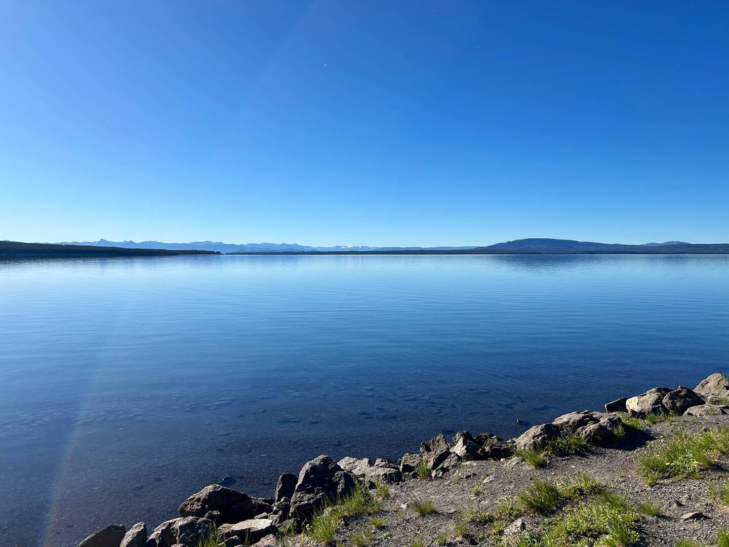 Vi smurte endnu engang sandwich i bilen. SÅ fornuftigt og 20 gange bedre end det “crab” man kan købe i parken. Og havregrød + appelsin juice til morgenmad. Vi må jo sparre lidt😉. Vejen ud af Yellowston i dag beskrev Theodore Roosevelt som USA’s smukkeste. Jeg giver ham ret! Ved siden af søen og floden og over et bjerg til cowboy og indianer land😵🤠🏜️🏔️ Røde bjerge og kæmpe vidder.