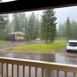 Vi faldt i søvn til lyden af meget fyrværkeri(4.juli) det rungede i bjergene. Det har været langt væk for der var affyring forbudt i den grandnåle skov vi boede i.