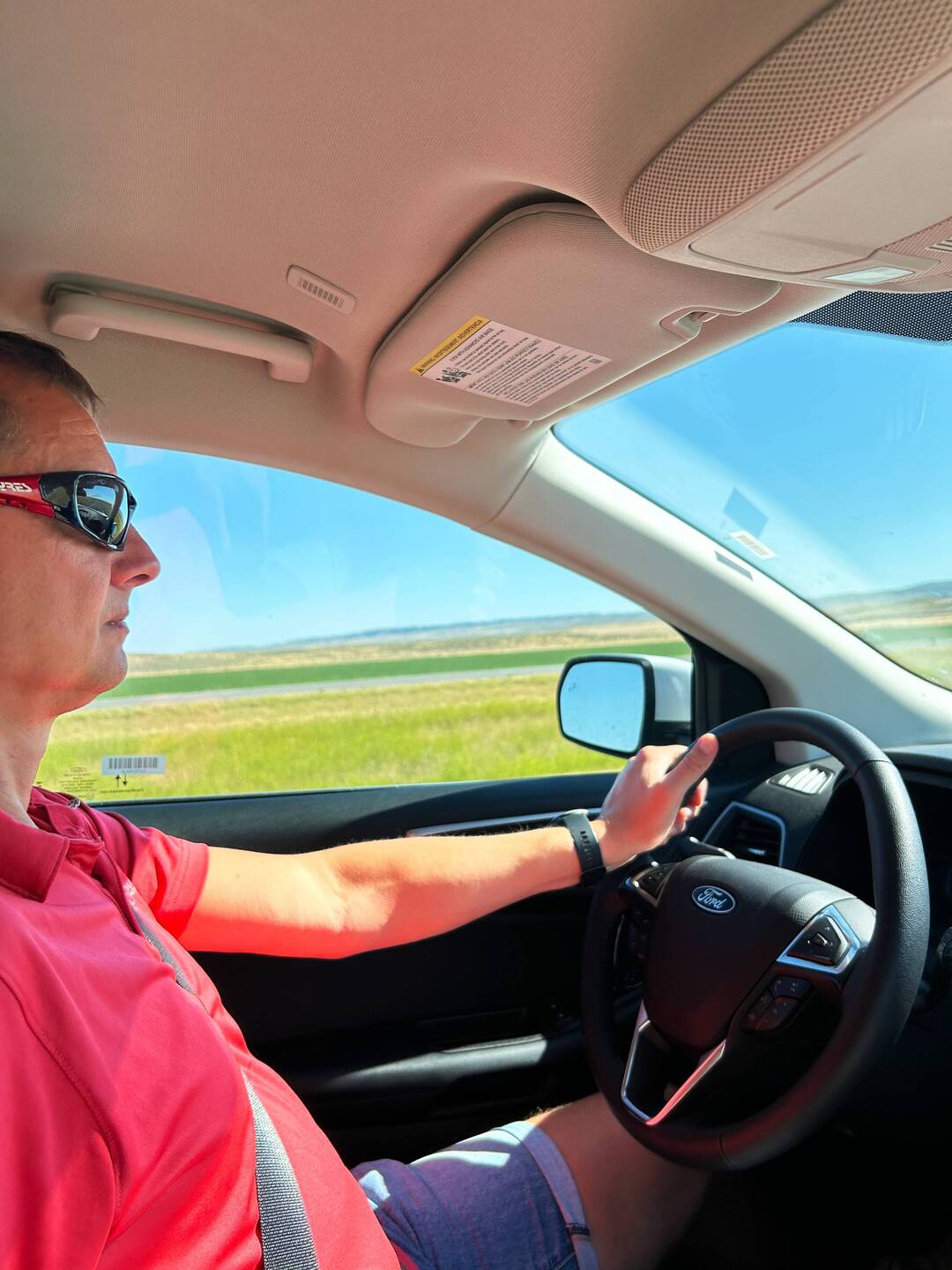 Afsted efter et par spejlæg, bacon og toastbrød. Et par timer og vi ramte “ørkenen” og Badlands lige i middagsheden🥵🥵 Jeg var med ude af bilen en gang😉 Ellers holdt jeg vagt i aircondition bil, mens Dennis tog billeder. Sandwich (som sædvandlige) i bilen, med aircondition og videre i det vilde landskab.