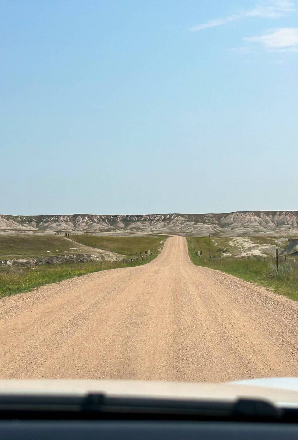 Vi kørte ud af de endeløse veje igen, 3 timer inkl. pauser. Virkelig smukke omgivelser på turen🤩 men man bliver helt immun. Kæmpe sletter - ingen, absolut ingen civilisation. Dog kvæg ind imellem.