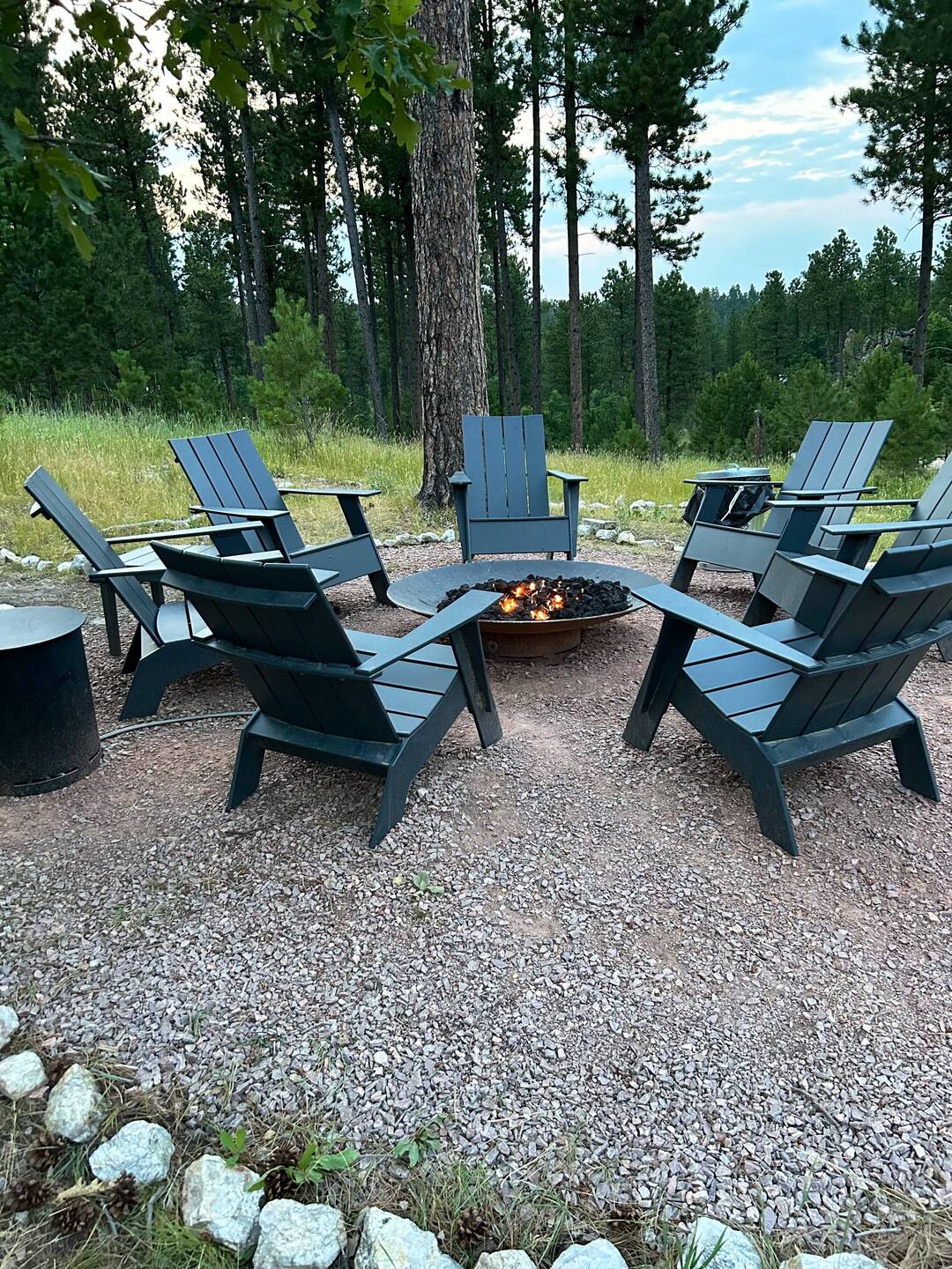 Hytten kom som et lille hus med køkken og “stue”. Og bedst af alt et udendørs område. Her sidder vi og nyder livet. Her er lidt koldt (18 grader) med det er meget bedre end Texas varmt🙏🏻💪🏼
