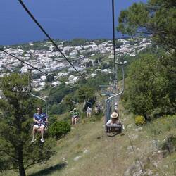 Queued for an hour for the stupid little bus to jam us on board like sardines and deposit us at Anacapri. Queued for tickets to the chairlift. That bit was actually lovely. A great view over Capri. Ran around at the top to take a couple of photos then queued for the chairlift back down. As soon as we got off we bolted as we saw a big group heading in the direction of the bus stop. Beat them there as our bus pulled up, but it was full. Brett asked if they could please squeeze the four of us on, which they did. We stood on the stairs up against the doors, and luckily they didn't open.