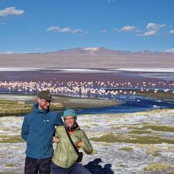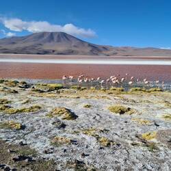 För de letschti Stopp vom hötige Tag, de Laguna Colorada, semmer chli länger gfahre. Die Lagune esch wäg de enthaltne Alge rot, was wederom vel Flamingos azieht. Dämol hemmer usgiebig Glägeheit gha, die spezielle Vögel z'fotografiere, dezue heds före Dani no es Kafi gäh. D'Jasi, wo scho de ganz Tag Chopfweh gha hed, hätt gschiider en Coca-Tee gnoh. Hed sie aber ned, niemer weiss werom. Of de Fahrt of Villa Mar, em Öbernachtigsort, hemmer vom Gio einiges öber Lamas erfahre, d'Natur do im Allgemeine ond au sin Musiggschmack. S'Hostel in Villa Mar esch eifach gsi, hed aber warm Wasser zom Dusche gha. En Luxus, wo anderi, wo sone Tour gmacht hend, offebar ned gha hend.Read more