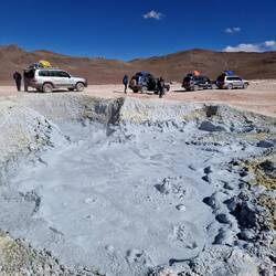 Nocheme Bad im warme Wasser hemmer det grad no z'Mettag gässe. Im Aschloss eschs ofe höchschti Ponkt vo de Reis gange, nämlech of ca. 4900 m ü. M., wo mer d'Geysire "Sol de Mañana" send go aluege. Im Gägesatz zo iidröcklechere Geysire wo Wasser meterhöch i d'Loft schiessed, dönd die ehnder gmüetlech vor sech hii blubbere, cool eschs natürlech trotzdem gsi (trotz em Schwäfelgroch).
