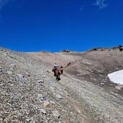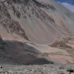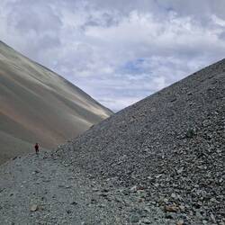 De Röckwäg vom chorzerhand vo üs benannte Crumbly Saddle ond 4/7-Peak zo de Hötte esch dank rötschender Fortbewegig ofem lose Chies düütlech eifacher gsi als de Ufewäg.