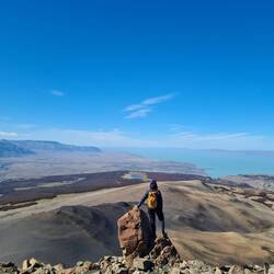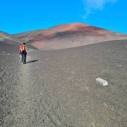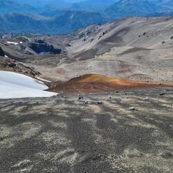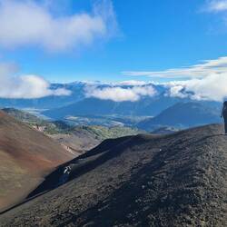 Wiiter obe esch s'Laufe im Vulkansand (Chatzestreu) rächt müehsam gsi, ofem Gipfel semmer denn aber metere wonderbare Ussecht ofe Krater ond de denne glägni Gletscher belohnt worde. Zom abe goh hemmer en andere Wäg gwählt ond hend debii e Riitergroppe gchrützt. Iidröcklech, was för Wäge mer ofemene Ross no begoh cha.