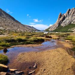 So hemmer wenig spöter die rond 24 km langi Wanderig zom Refugio Frey ond weder zrogg chönne agoh. De Wäg zo de Hötte sälber esch ned so spannend gsi, dobe hemmer nochere windige Mettagspause de chlii See no omrondet ond send weder zrogg. Weder hemmer de Bus verpasst, dämol, wel mer am falsche Ort ofne gwartet hend (20 Meter zwiit vore, de Chauffeur hed üs denn zverstoh gä, dass mer falsch seiged ond esch döregfahre). Zo üsere Verteidigong: Iiheimischi hend gseid, mer stienged do rechtig! Die hend de halt au ofe nöchscht mösse warte.