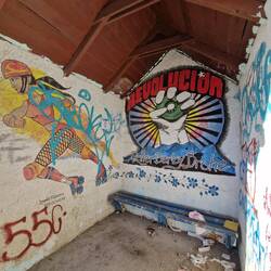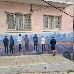 Ond in Puerto Montt hemmer no kei Onderkonft gha. Das esch bewosst gsi, wel mer hend üses Glöck welle spontan im Hostal Suizo probiere, wo vo de Rossy ond ehrem Maa, em Walter, gfüehrt werd. D'Rossy hed e wechtigi Rolle gspelt gha, wo vor 31 Johr em Dani sin Onkel ond Götti in Chile veronfallt esch. Bes hött esch sie met de Familie befröndet ond mer hend sie welle go bsueche. Wel sie de Hostelbetrieb reduziere wend, esch e Onlinebuechig ned möglech, die einzig Möglechkeit esch, sälber det verbii z'goh. Sie send zom Glöck ome gsi ond hend üs härzlech empfange. Mer send de grad zom Ässe iiglade worde ond nochdem mer guet Pisco-Sprite met ehne tronke hend, hed üs d'Rossy denn au no bimene Rondgang dörs Huus ehri zahlriiche Gmälde zeigt, wo sie als Könschtlerin gschaffe hed.