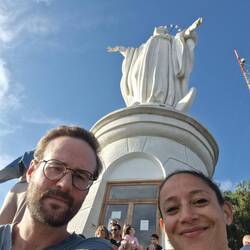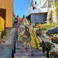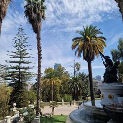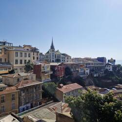 De zwoit komplett Tag in Santiago hed met plane gstartet. Gäg de Mettag semmer weder chli i de Stadt omegschlenderet, send öppis go ässe (d'Jasi hed en typische chilenische Algesalat gha. Die gliiche Alge gfendt mer in Neuseeland öberall am Strand) bevor mer en Abstächer i d'Nationalbibliothek gmacht ond üs de ofe Wäg ofe Cerro San Cristóbal, de höchscht natürlech Ussichtsponkt diräkt i de Stadt, gmacht hend. Med 300 Höhemeter esch er glich höch wie s'höchschte Gebäude vo de chilenische Hauptstadt.