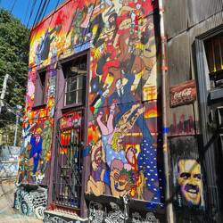 Spöter weder Rechtig Downtown, chorz a Hafe, de öppis go ässe. De Esteban hed üs d'Chorillana empfohle gha, es chilenischs Grecht, wo aber eigentlech zom teile dänkt esch. De Dani, i sinere Freud, dass es es lokals Grecht inere Vegi-Version ged, bstellts, ohni em "familiar" im Menü Beachtig z'schänke. Jo, mer hend a dem Obig för vier gässe...