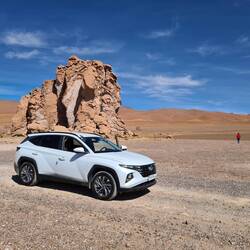 Üsi nöchscht Etappe widmet sech em Norde vo Chile ond Argentinie, also hemmer üs medem Flogzüg uf noch Calama gmacht, wo es Mietauto of üs gwartet hed. Omgekehrt hend au mer mösse warte, d'Schlange bim Autovermieter hed üs 45 Minute gchoschtet, denn hend mer no müesse of d'Papier för de Gränzöbertrett warte, denn erscht hemmer los chönne is 100km entfärnte San Pedro de Atacama. Det hemmer för ei Nacht üsi Zält ufgschlage. Üses Zemmer im Hostel esch ok gsi, de versprochnig "Parkplatz" aber esch zemmli knapp bemässe gsi ond s'Auto esch im Prinzip eifach im Innehof gstande, wos allne im Wäg gsi esch.