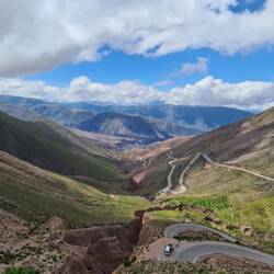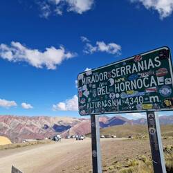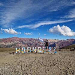 Noch dere Wanderig semmer of Humahuaca wiiter, wo mer es Hostel gha hend. D'Omgäbig vom Hostel, Chiesstross met so guet wie allne Hüüser no im Rohbau, hed üs a de Rechtigkeit vo de Adrässi loh zwiifle, aber nei - mer send rechtig gsi (obwohl üses Hostel met de Armierigsiise, wo bem Dach usegluegt hend, au noni fertig usgseh hed). Nochem Check-in semmer grad weder is Auto zom of Hornocal z'fahre, wo spektakuläri 14-farbigi Bärge of üs gwartet hend. Nätt wie mer send, hemmer anere Iiheimische grad no en Metfahrglägeheit bote (allerdengs ned ganz freiwellig: Bevor mer üs öberhaupt en Antwort hend chönne öberlegge, esch die Dame metsamt Täschene be de Rachel ond Melissa of de Röckbank ghocket). De Ussechtsponkt esch of 4350 m.ü.M., was mer bem Laufe scho chli gmerkt hed. Det hemmer es Päärli us Rosario atroffe, wos i dere Konstellation gar ned döft gäh: Är River Plate Fan, sie Boca Juniors. Bemene teilte Mate hemmer die wonderschöne Bärge bestuunt, bevor mer weder zrogg zom Auto send.
